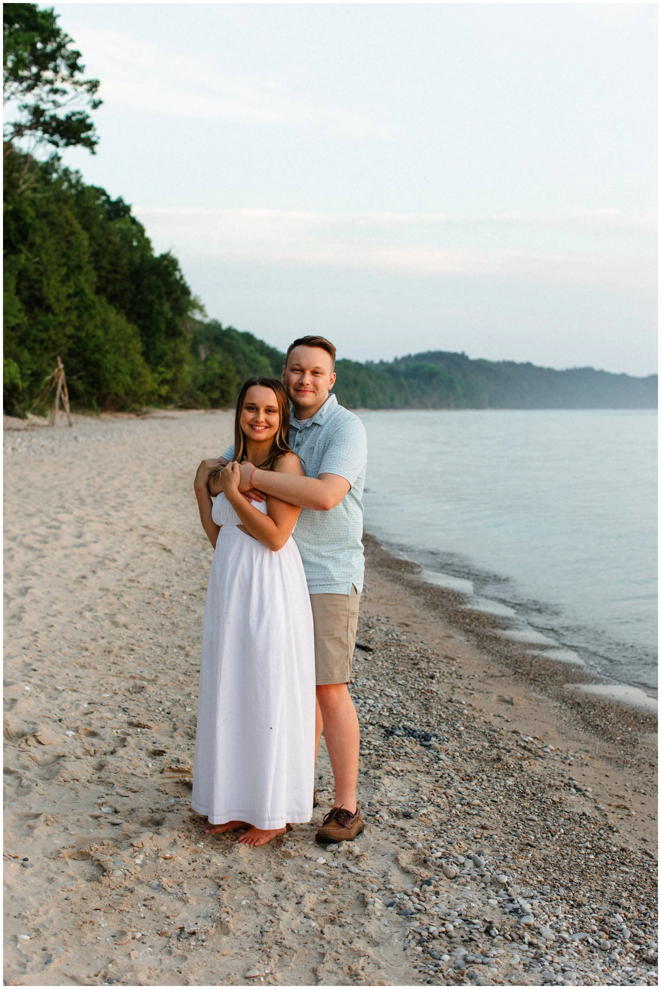 A serene evening out on Lake Michigan. What more could you ask for? As we explored Glen Haven together, feeling the sand beneath our feet, watching the sun filter through the trees, and hiking the dunes as the moon rose, we dove into their love story and learned more about them as a couple. These two are so comfortable and at ease together, like they were always meant to be, which of course made photographing them ridiculously easy.