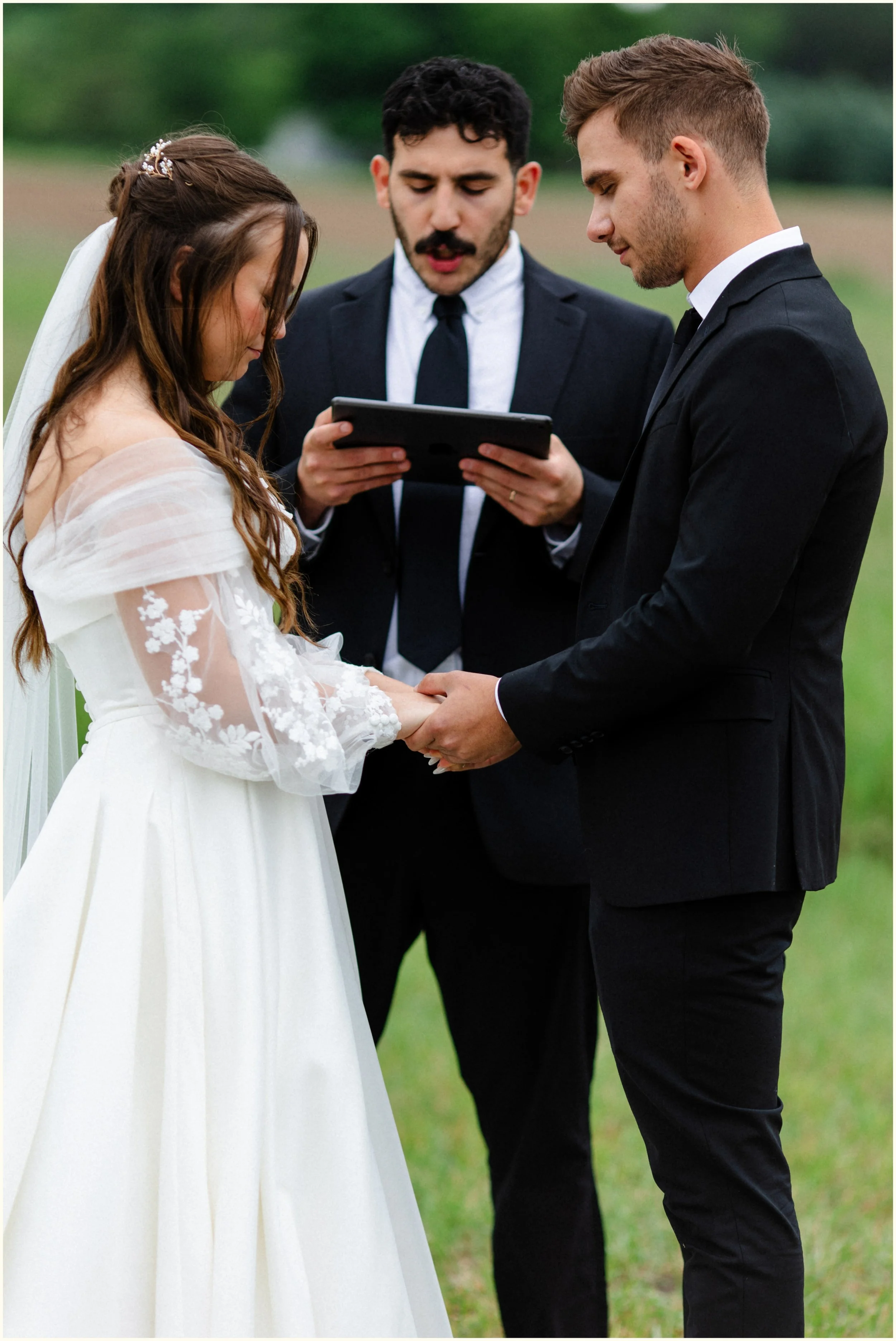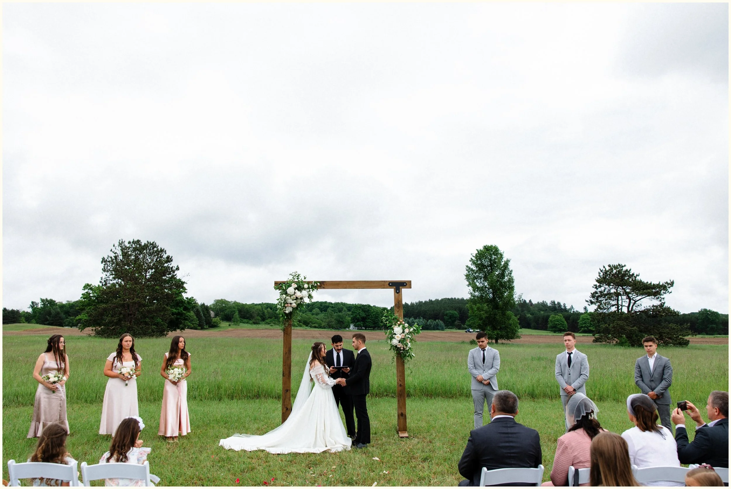 At the lavender farm they made a last-minute rain call— deciding to go for it with an outdoor ceremony. Lo and behold, the rain held off and later the clouds parted for full and glorious sunshine for the rest of the evening.